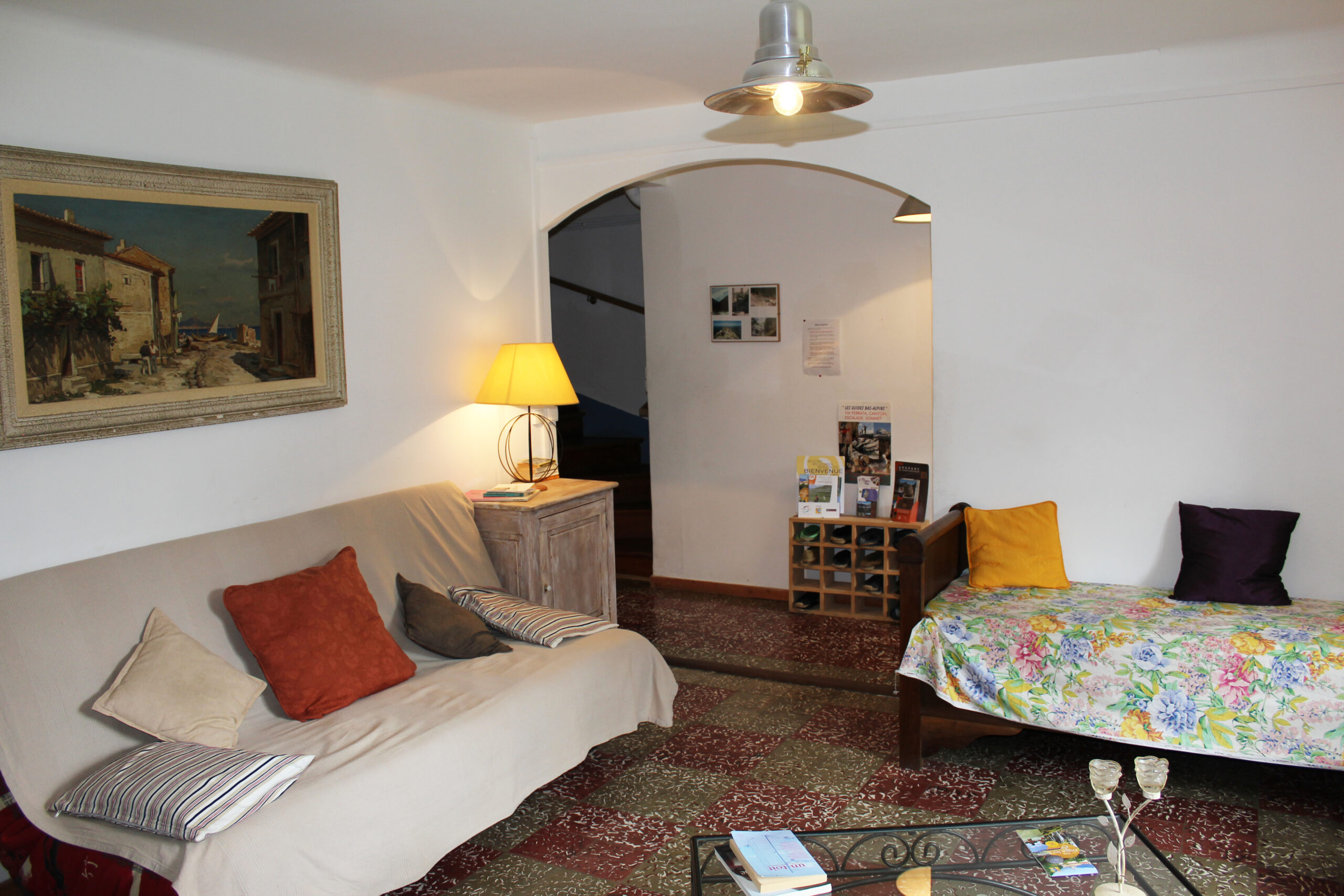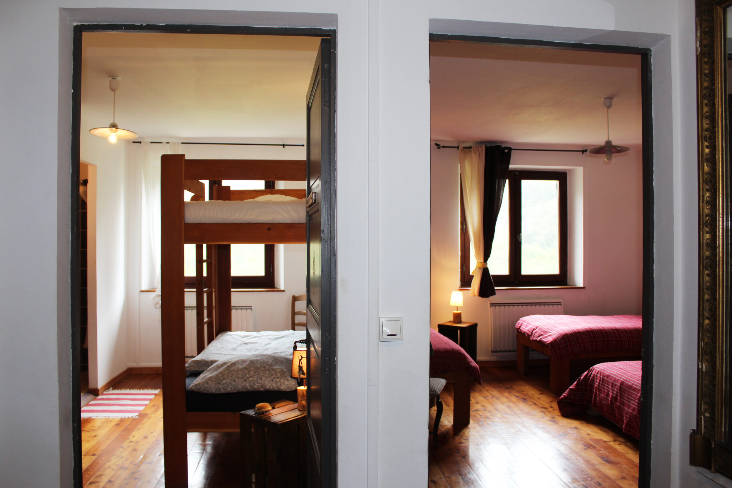Il se compose de 14 couchages répartis en 4 chambres ( deux de 4 lits superposés, une de 2 lits bas d’une personne et d’un grand lit 2 places et la dernière d’un lit 2 places) chacune dotée de douche à l’italienne et lavabo, fenêtre avec vue sur les montagnes ou sur la colline), un grand salon avec poêle à bois, TV, jeux de société, livres, une salle à manger et une cuisine entièrement équipée.